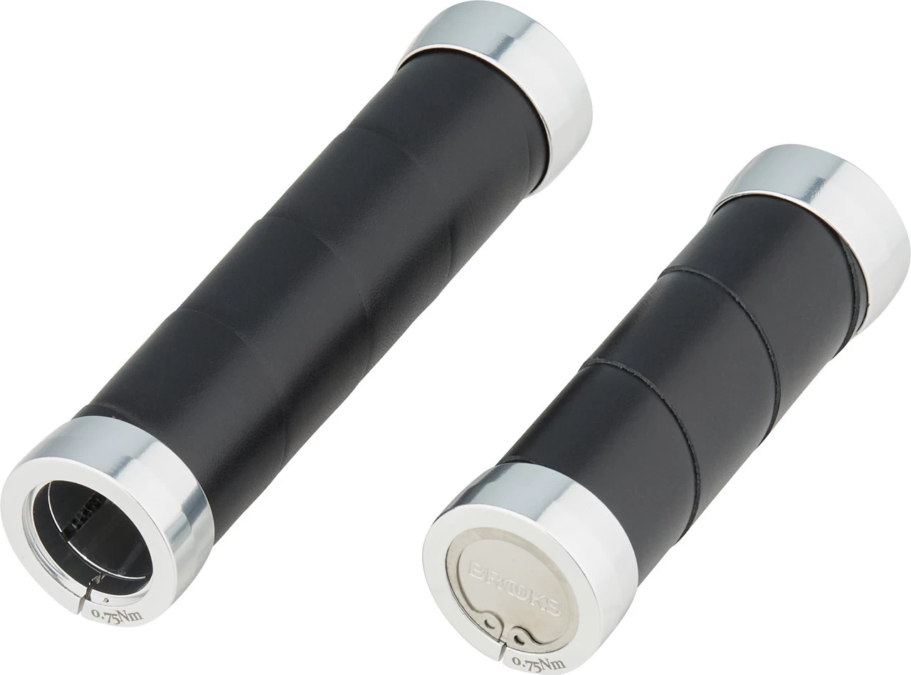 Die Slender Lenkergriffe von Brooks werden mit Drehgriffschalter an einer Seite verwendet. Sie bestehen aus Leder, wodurch eine besonders natürliche Haptik entsteht. Es umschließt einen stabilen Kern aus Aluminium. Klemmung und Lockring bestehen aus Aluminium und Stahl. Das Lederband ist austauschbar.