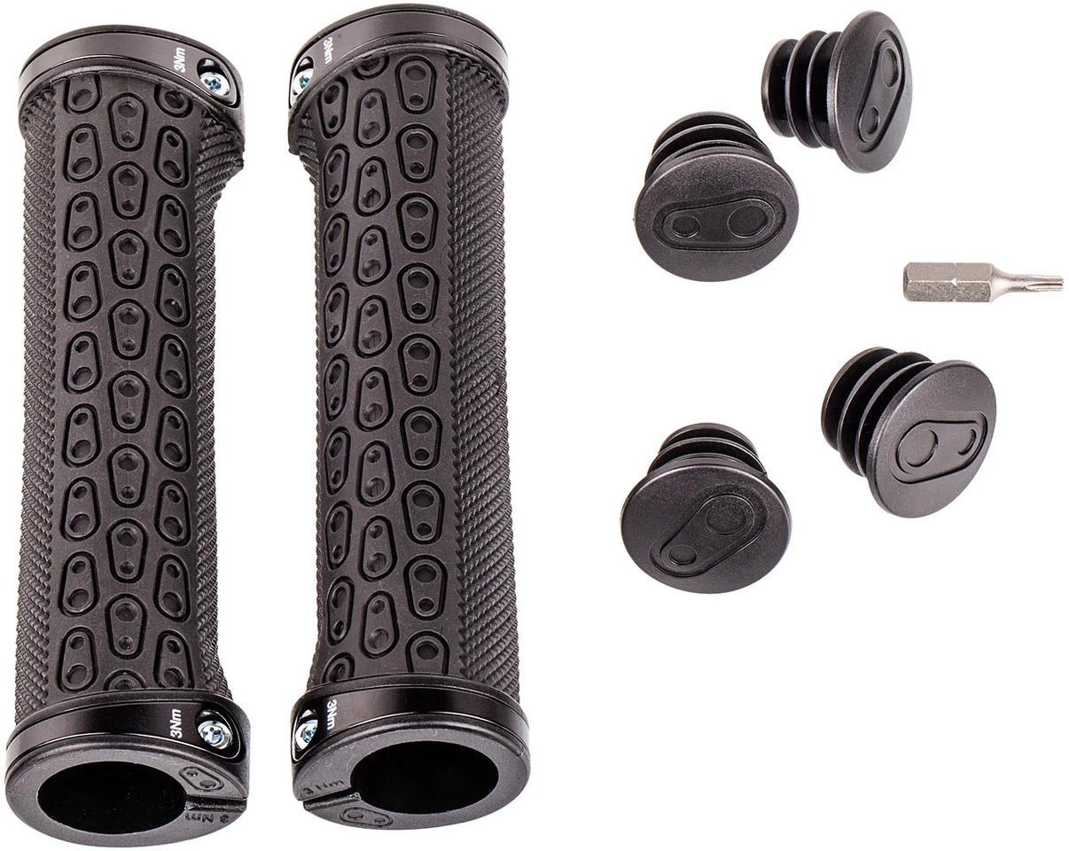 Spezifikationen:Einsatzbereich:EnduroKlemmung:beidseitige KlemmungLänge:130 mmTechnische Daten:Material:Gummi (Krayton)Material Lockring:Aluminium (6061-T6)Features:Torx T10 SchraubenHerstellernummer:14920
