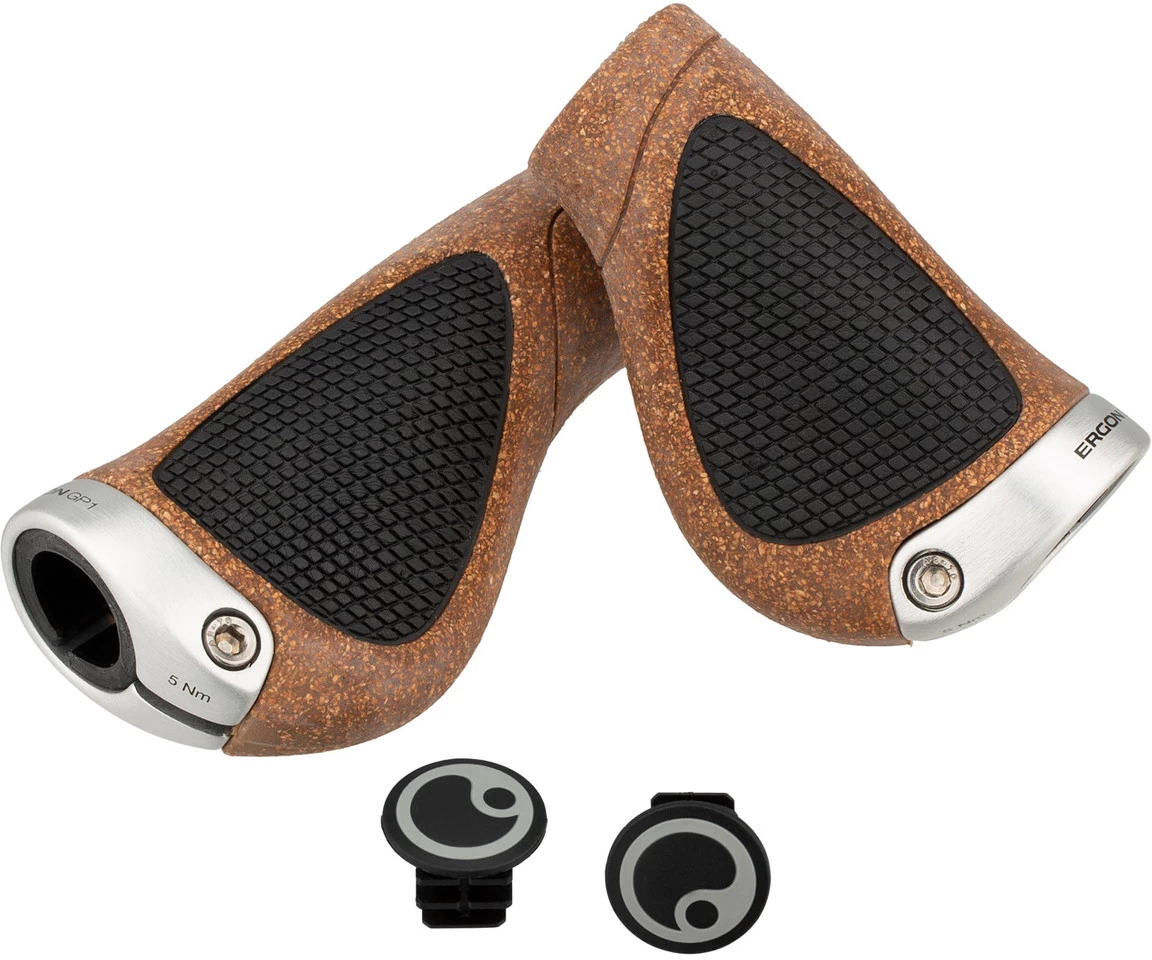 Die GP1 Lenkergriffe von Ergon aus BioKork sind für einseitige Drehgriffschalter geeignet und machen Dein Touring-Bike komfortabler. Die aus Kork-Composite bestehende Oberfläche ist sehr hautfreundlich und erhöht den Grip. Die ergonomisch geformte Handballenauflage lässt sich durch Drehen des Griffs an Deine individuellen Vorlieben anpassen. So vermeidest Du taube Finger sowie schmerzende Hände und Unterarme.
