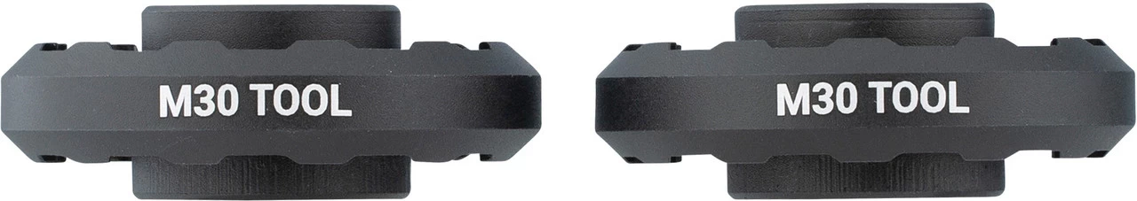 Das M30 Innenlagerwerkzeug-Set von Praxis Works ist zur Montage der M30 und M30 THRU Innenlager erforderlich. Es umfasst einen Innenlagerschlüssel für die 30 mm Seite und einen für die 28 mm Seite. Beide Werkzeuge haben eine 3/8″ Aufnahme und wurden mit einem rutschhemmenden Design versehen. Sie lassen sich nicht für die Konversionsinnenlager von Praxis Works verwenden.