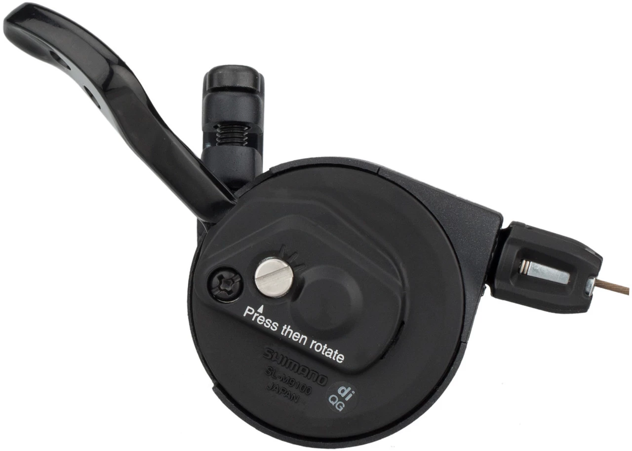 Der SL-M9100-I Shifter, der mit einer klassischen Lenkerklemmschelle befestigt wird, weist darüber hinaus weitere interessante Features auf. So sorgen die beiden Gummi-Kontaktflächen für mehr Grip und die 4-fach Lagerung steht für geschmeidige, langlebige Funktion. Zu guter Letzt garantiert die Instant Release Technologie eine unverzügliche Freigabe des Schaltzugs. Dieser ist übrigens Polymer-beschichtet und wird genauso wie die Außenhülle mitgeliefert.