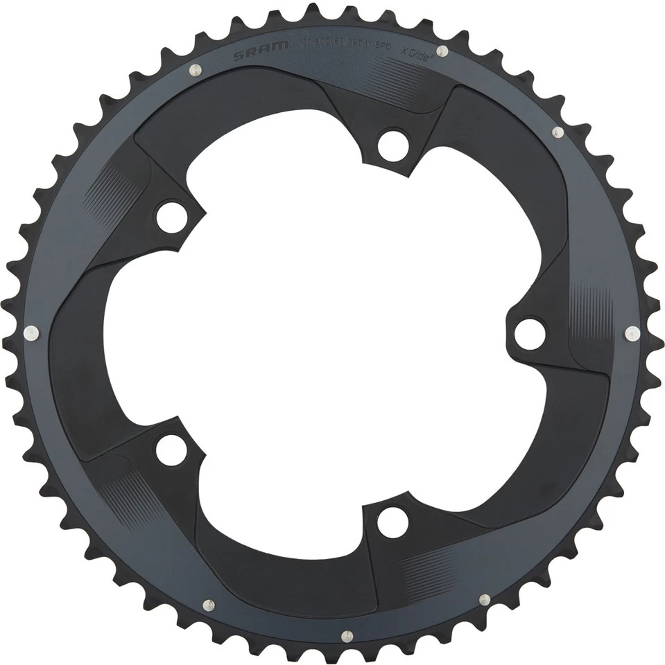 Spezifikationen:Einsatzbereich:RoadBefestigung:130 mm Lochkreis, 5-ArmZähne:55 Z, 53 Z, 39 ZSchaltstufen:2×11-fachKompatibilität:Force 22 (Hidden Bolt/Non-Hidden Bolt)Technische Daten:Kombinationsmöglichkeiten:53-39 Z, 55-42 ZMaterial:AluminiumFeatures:5 mm Dicke (55 Z / 53 Z)3 mm Dicke (39 Z)CNC-gefrästTechnologie:X-Glide™