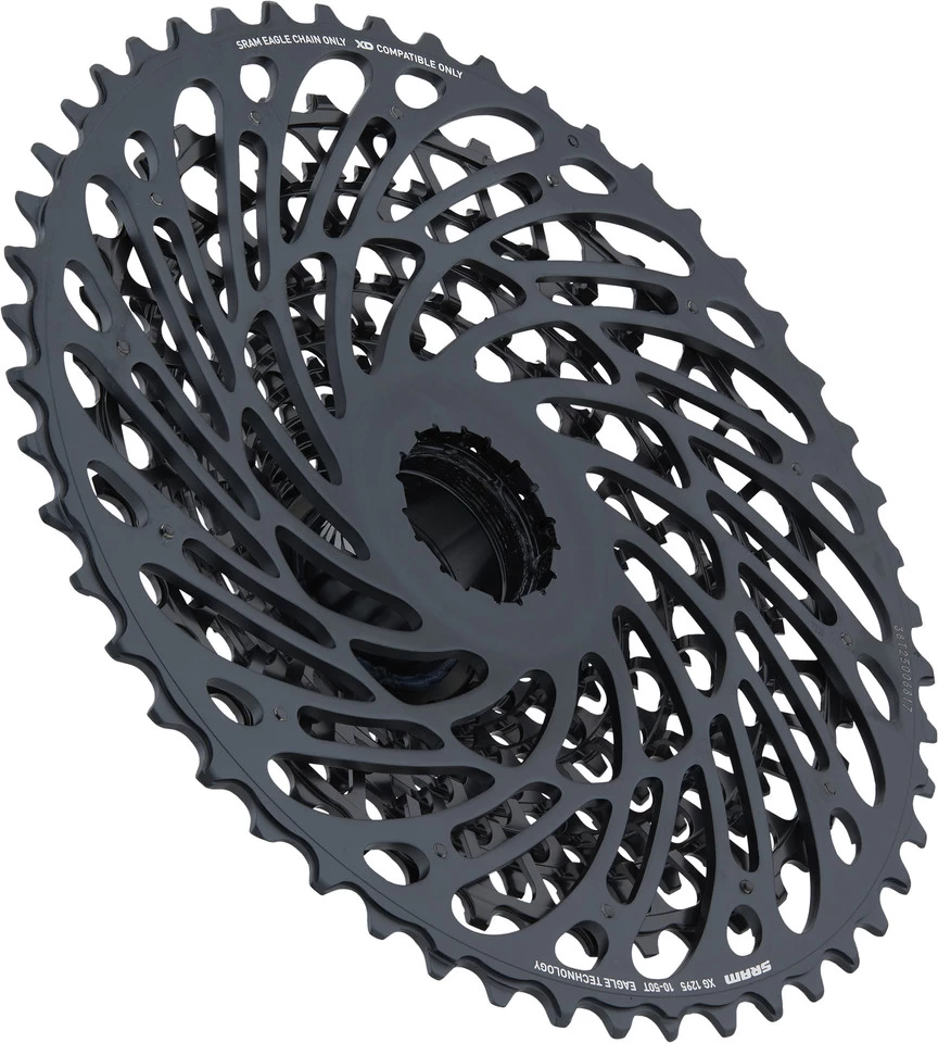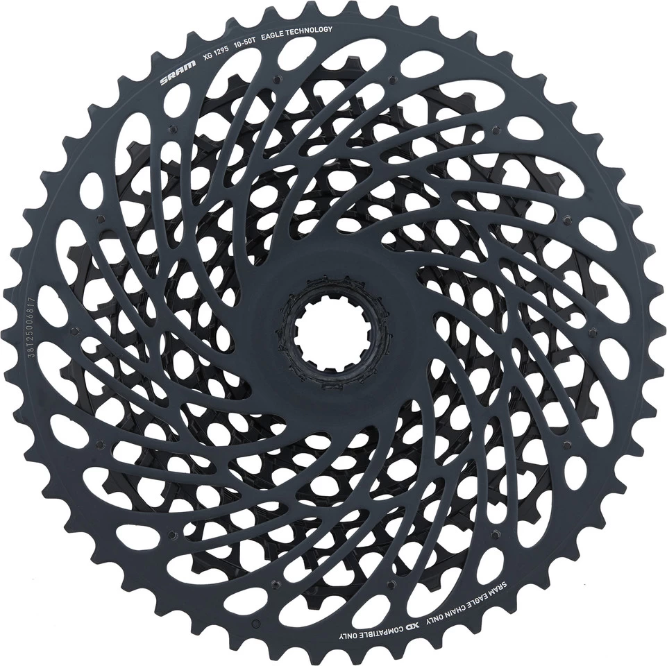 Die SRAM XG-1295 Kassette mit zwölf Schaltstufen überzeugt beim Mountainbiken mit leichtgängiger, geräuscharmer Schaltleistung. Farblich fügt sie sich in das Farbschema der X01-Eagle-AXS-Reihe ein, kann aber auch mit anderen Eagle-Komponenten kombiniert werden. Die X-Dome™-Architektur sorgt für sehr gute Verwindungssteifigkeit. Die XG-1295 bietet Dir mit ihrer hohen Bandbreite einen Schaltbereich, der auch an steilen Anstiegen den passenden Gang für Dich parat hat. Alternativ kannst Du auf ein größeres Kettenblatt umsteigen und so höhere Geschwindigkeiten erreichen, ohne das Klettern aufzugeben.