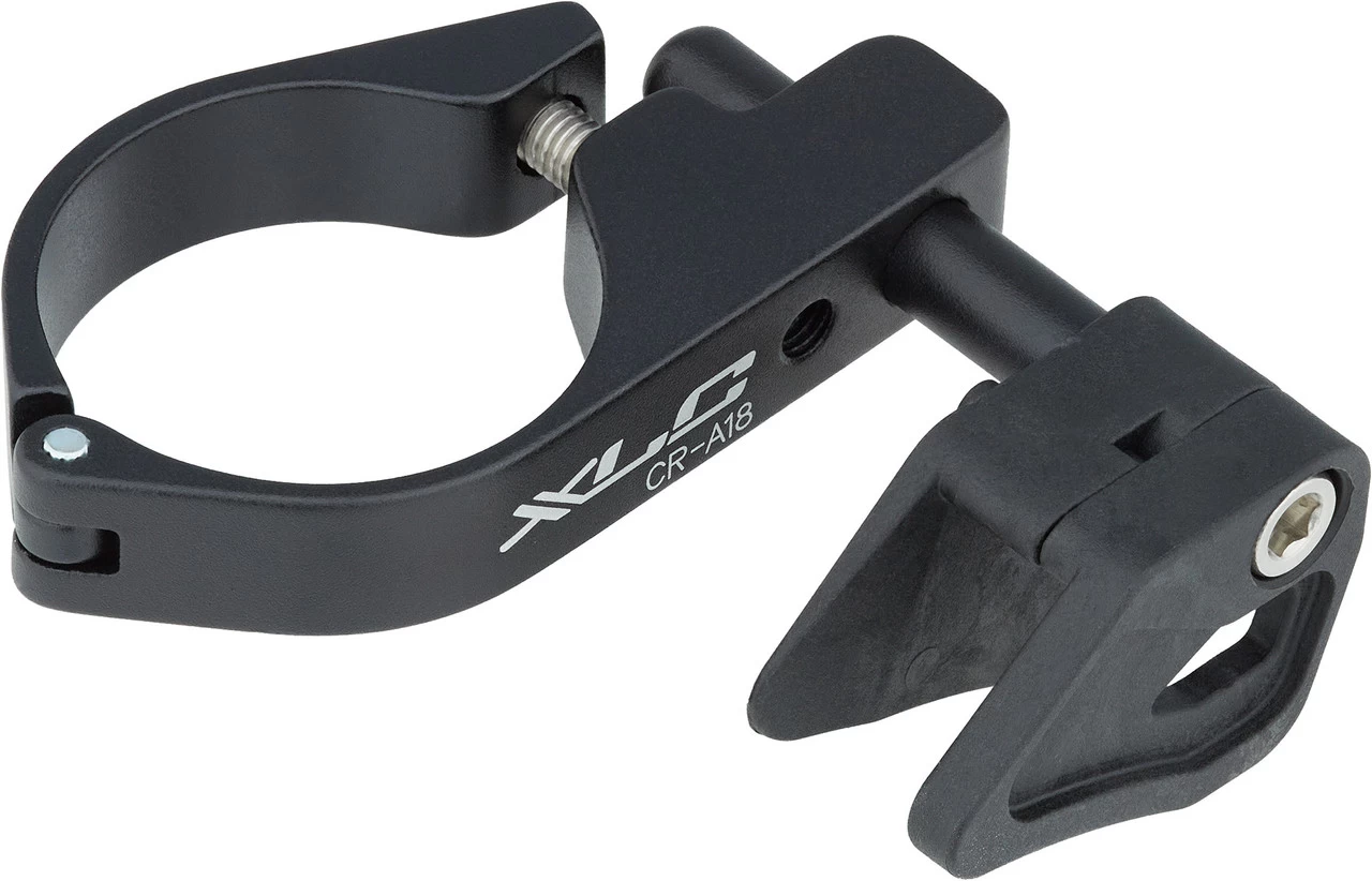 CR-A18 ist eine nur 44 Gramm leichte Kettenführung aus Aluminium von XLC. Sie eignet sich für Mountainbikes mit 1×9-fach, 1×10-fach oder 1×11-fach Schaltung und wird über eine Schelle am Sitzrohr montiert. Die Kettenführung wirkt einem Kettenschlagen und somit einem möglichen Kettenabwurf entgegen.
